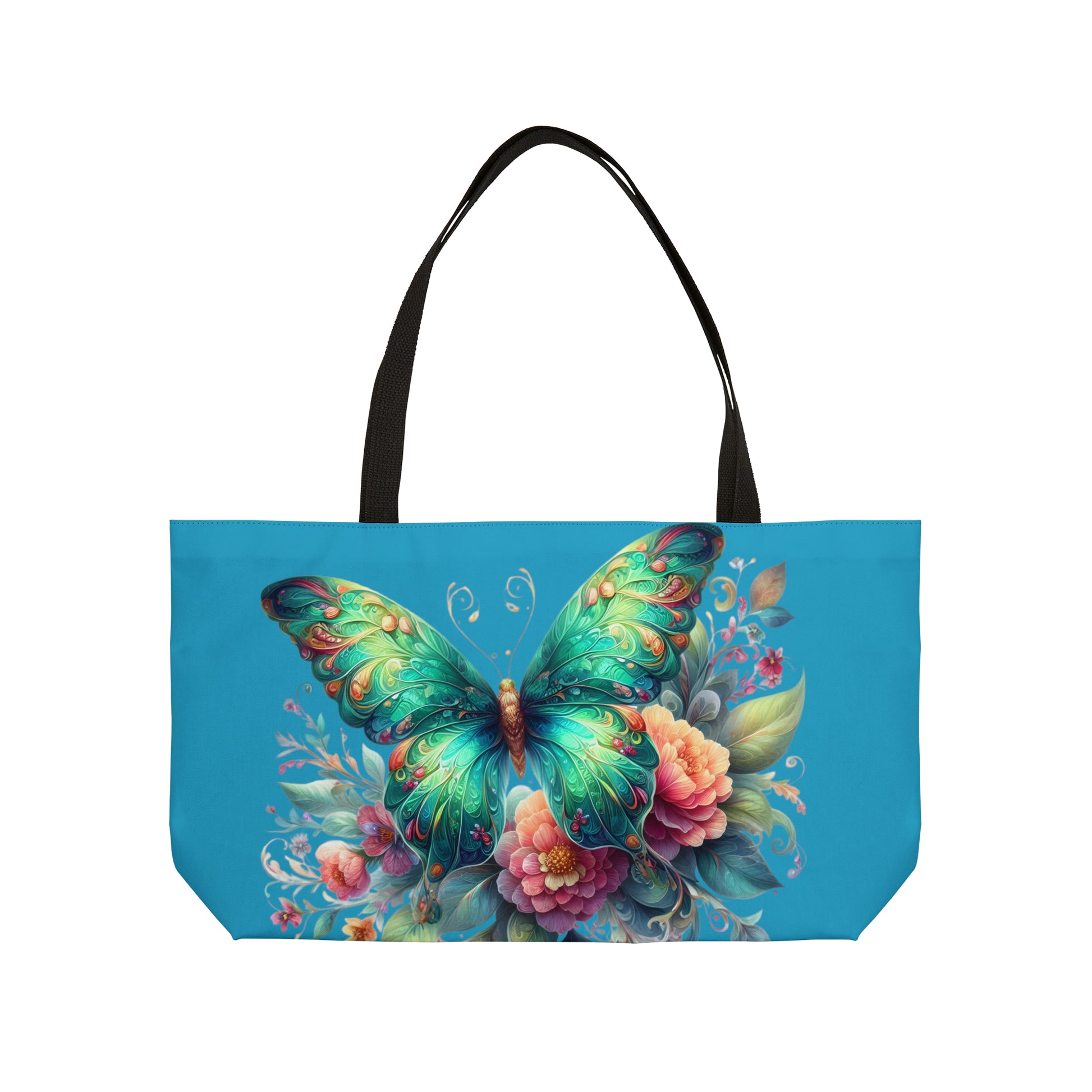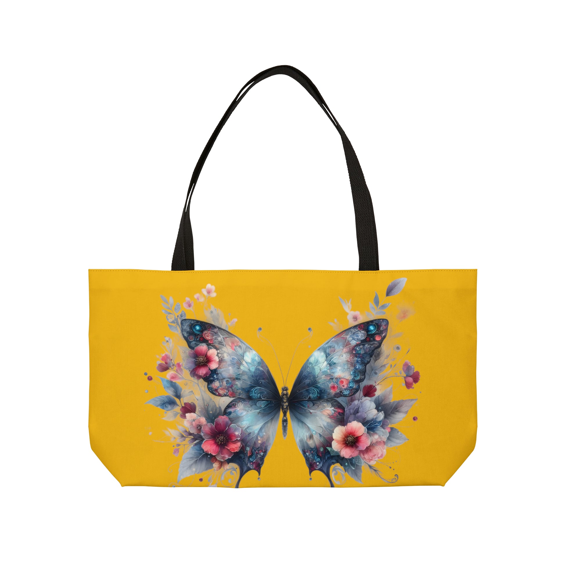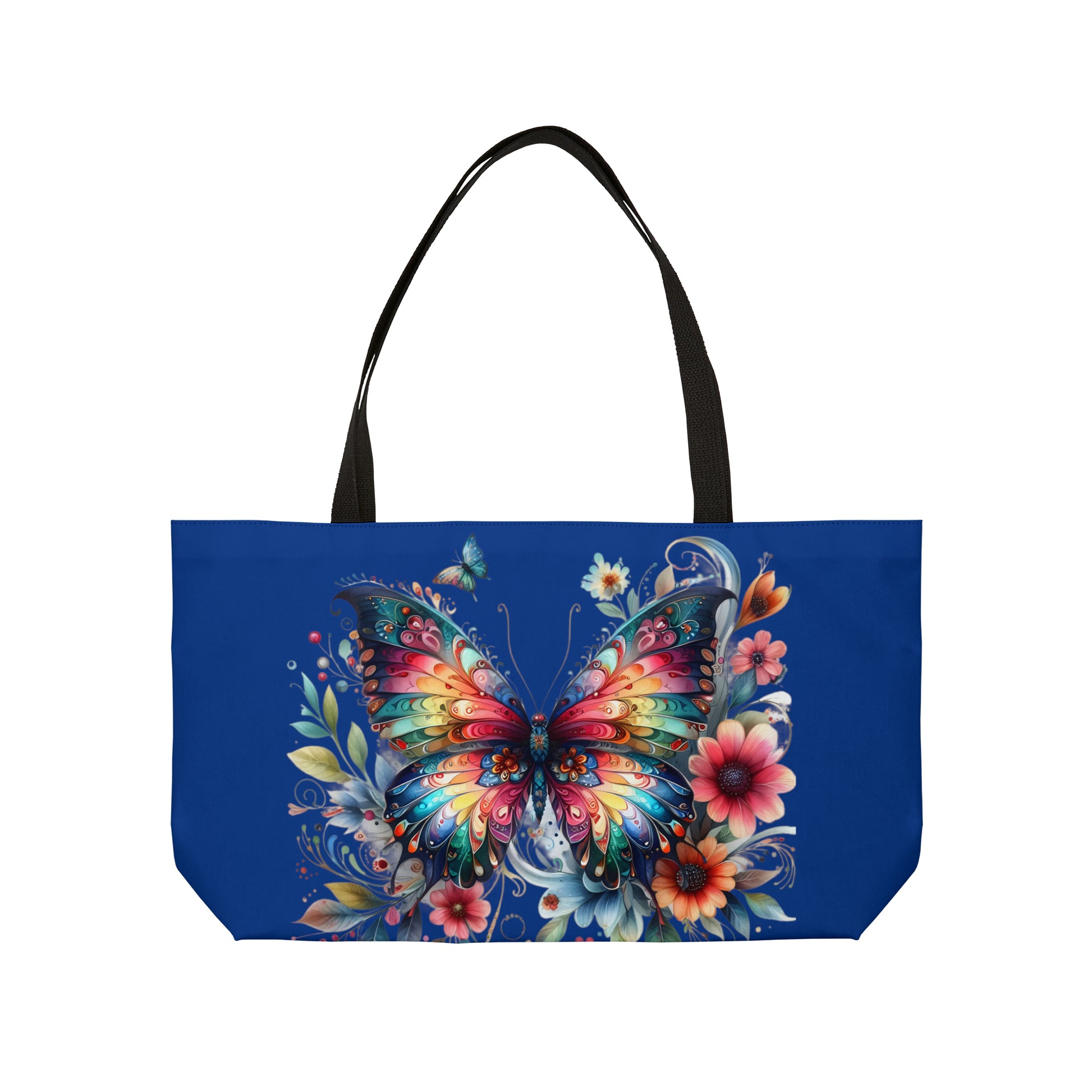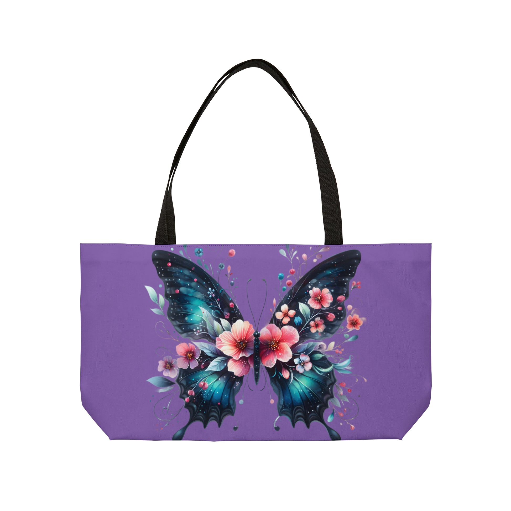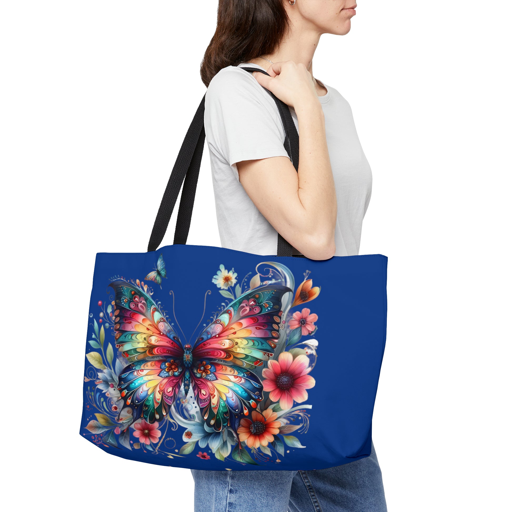 These weekender bags come in one size – 24" x 13" (60.9 cm x 33 cm) – perfect for those who love to travel light. Its t-bottom construction and black handles give it a sleek, classic look.