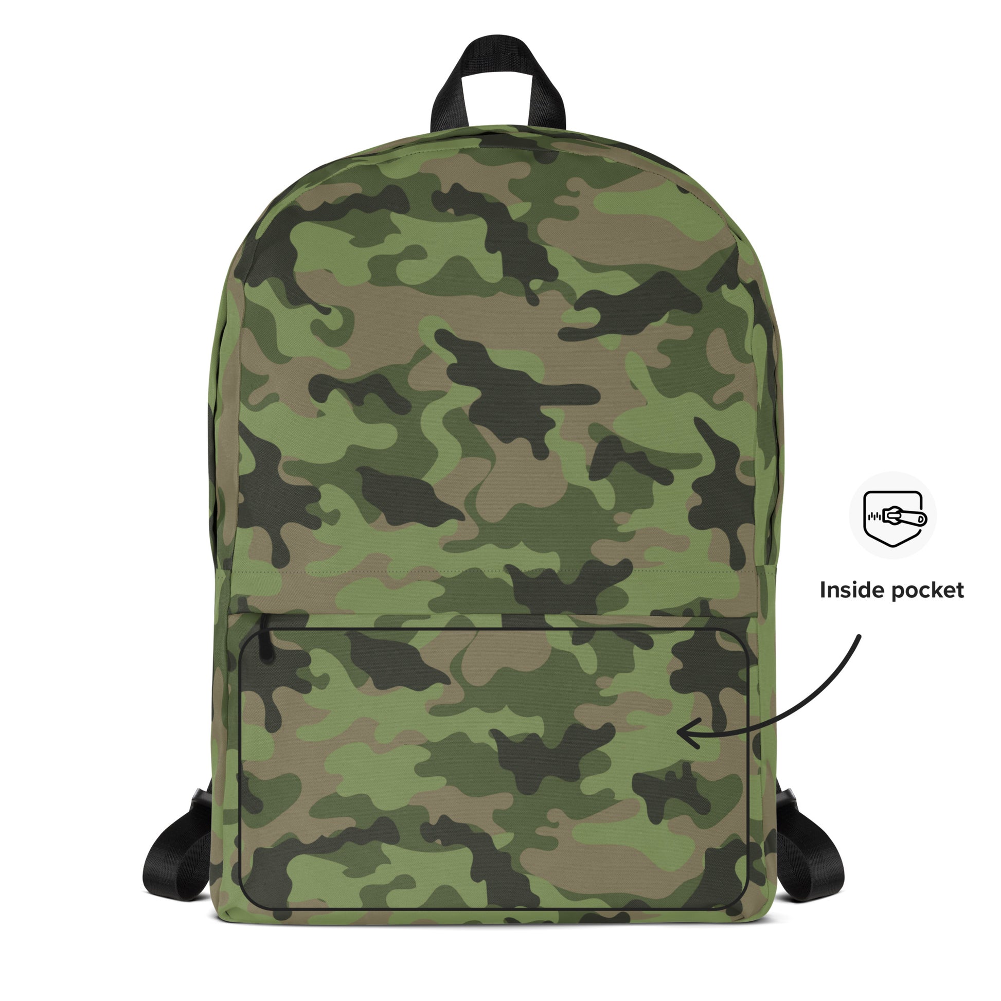 This medium size backpack has plenty of room with a big inner pocket, separate section for a 15'' laptop, front pocket, and a hidden pocket at the back for valuables. The bag is made out of a water-resistant material and will stay crisp and fresh no matter the weather!