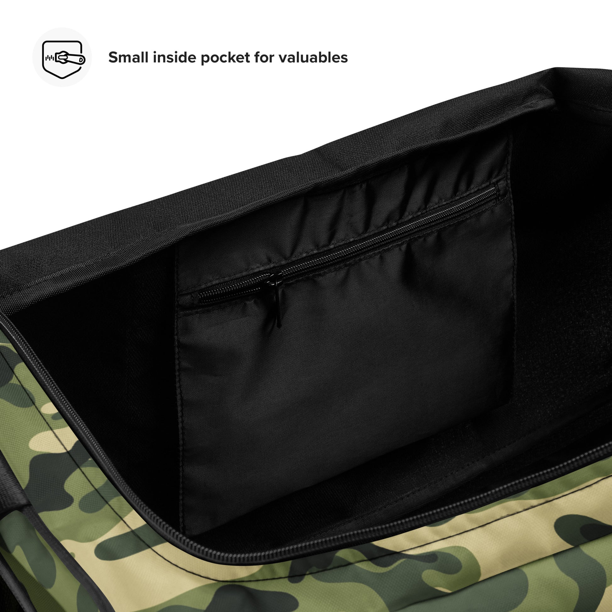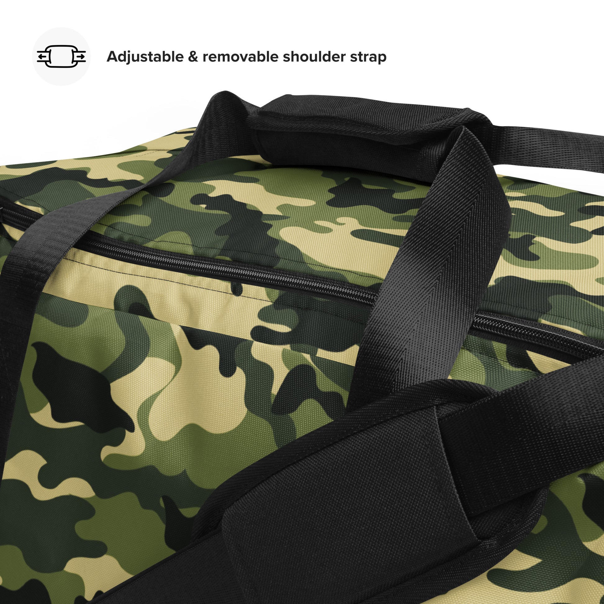 This Camouflage Print Duffle Bag is the perfect spacious bag no matter the occasion. It’s great for packing exercise gear when heading to the gym, or throwing in necessities and going on an adventure. Your stuff will stay organized and safe with the bag’s multiple inside pockets. The bag’s shoulder strap is adjustable or removable, while the dual padded handles with velcro fastening ensure easy carrying.