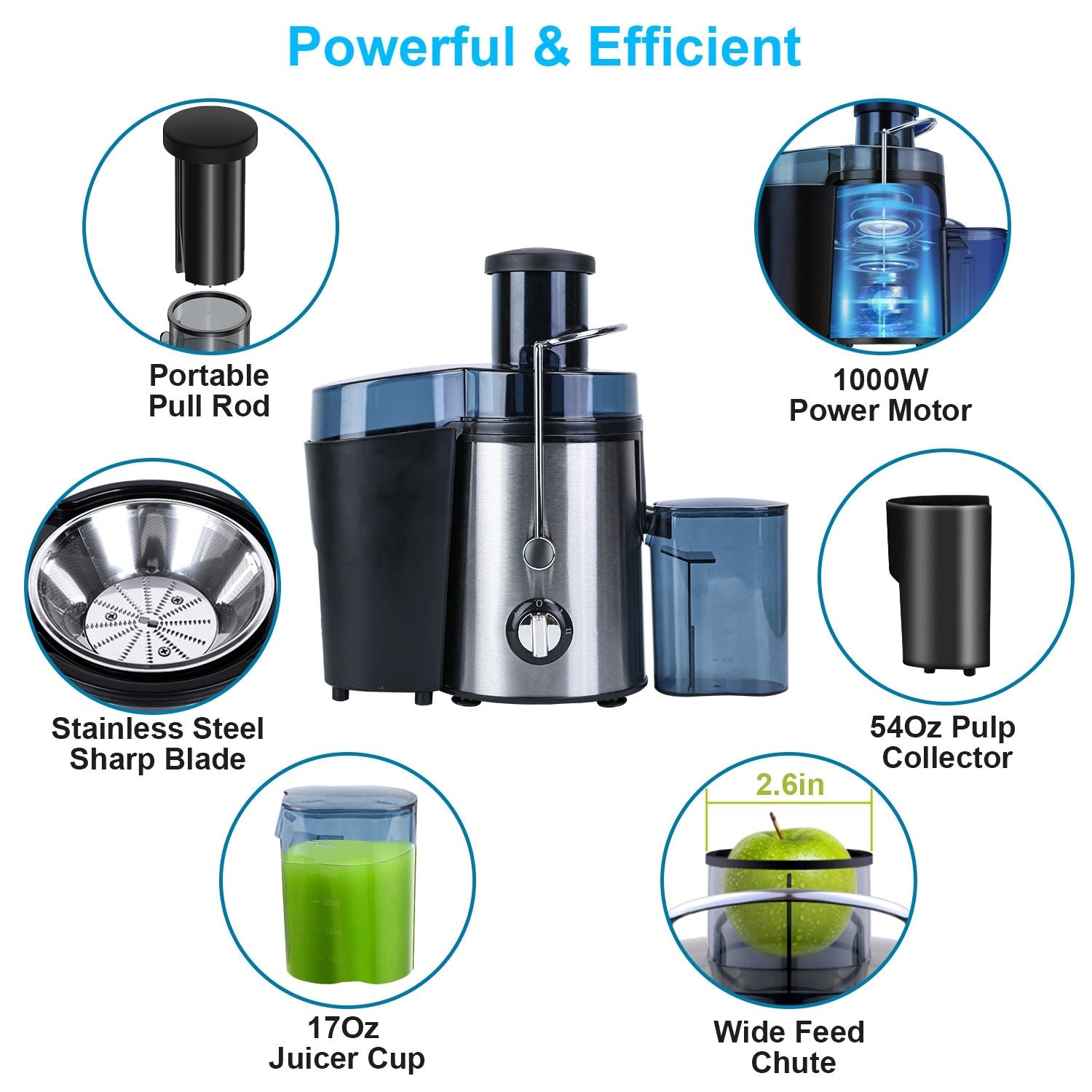 - Provides up to 1000W power and the high-speed motor can make fruit and vegetable juice within seconds