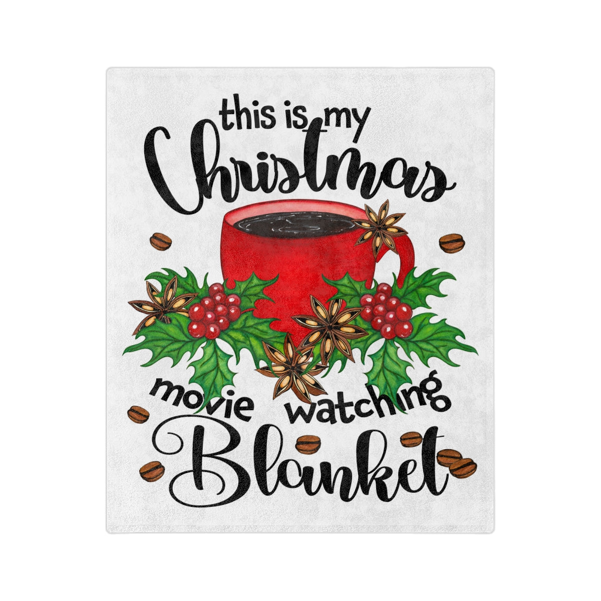 Wrap yourself in warmth and joy with this delightful blanket. Perfect for cozy nights spent watching your favorite holiday movies, it offers an ambiance of comfort and cheer. The vibrant design features a festive coffee cup surrounded by seasonal greenery, making it an ideal addition to your winter décor. This product is perfect for families, friends, or anyone who loves to enjoy a snug atmosphere during the chilly months. Great for Christmas gatherings, movie nights, or as a thoughtful gift for loved ones, it brings heartfelt charm to the season.