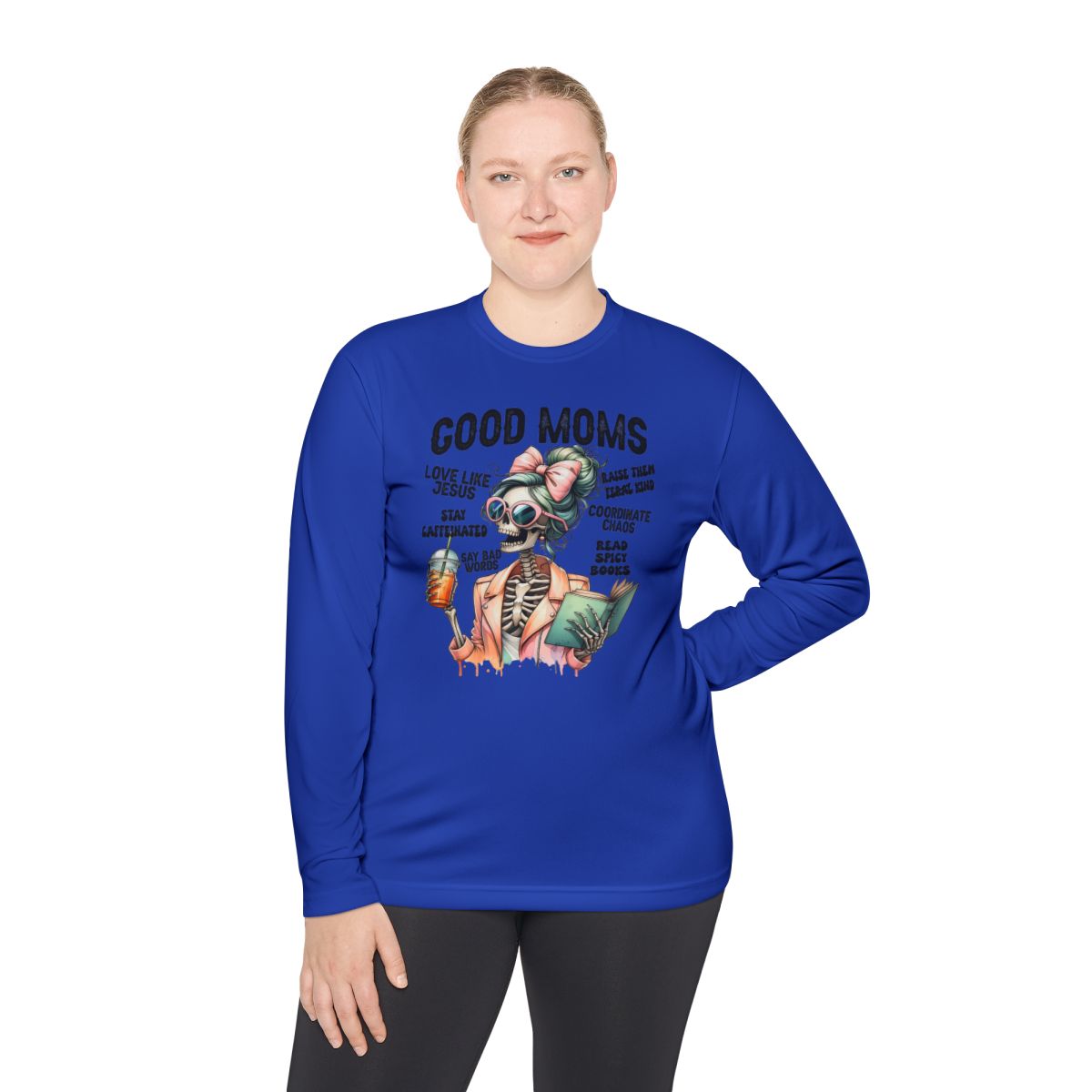 This Long Sleeve Tee with 'Good moms' design is perfect for active individuals looking for a lightweight and moisture-wicking top. It provides a comfortable fit and keeps you cool during physical activities. Ideal for moms who value comfort and style, this tee is great for Mother's Day or everyday wear.
