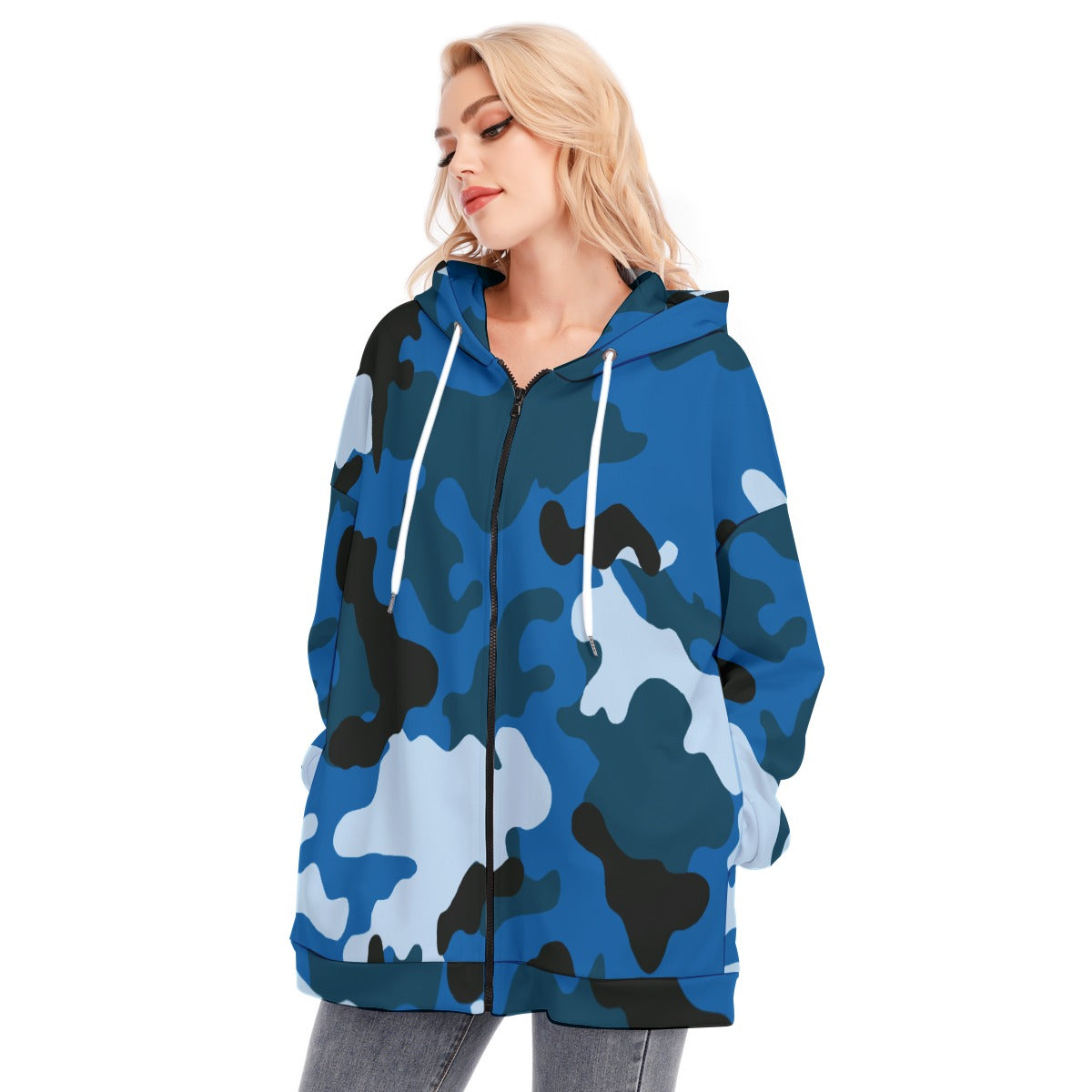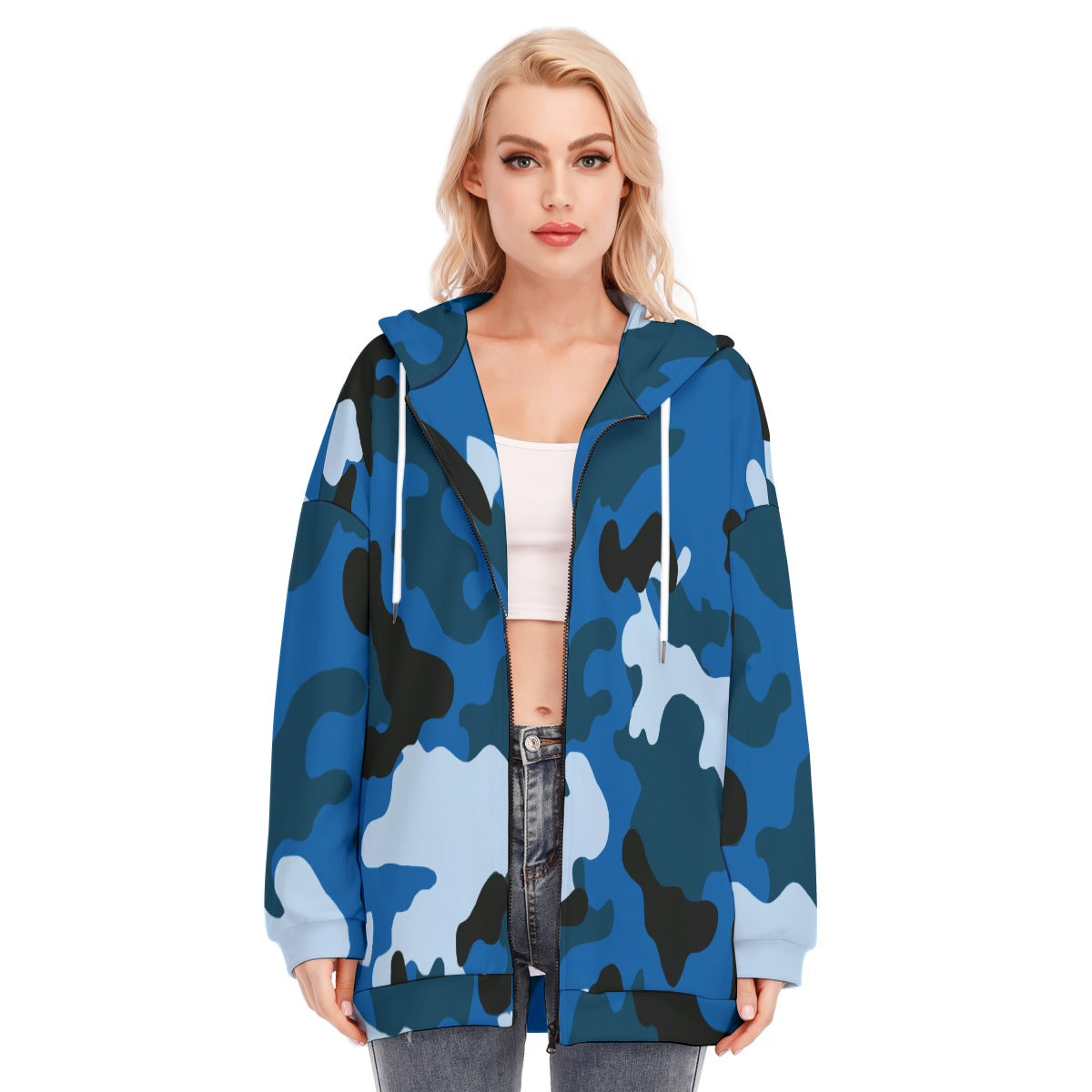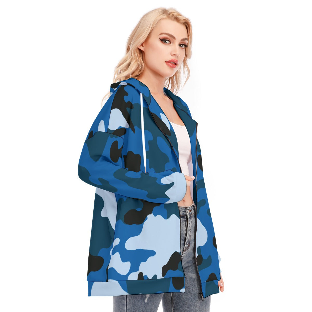 Long women's hoodie, zipper closure, classic style, long sleeves, with adjustable hood rope, can be worn daily