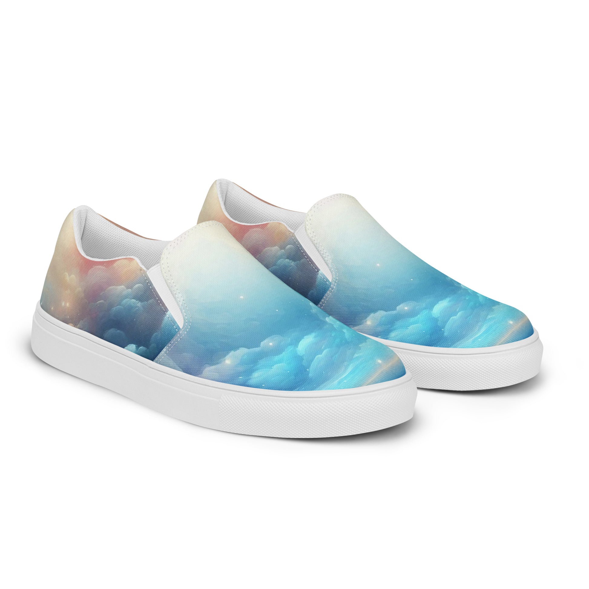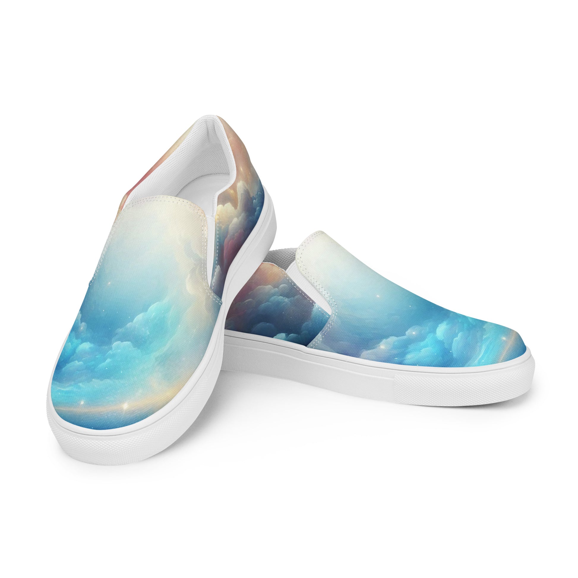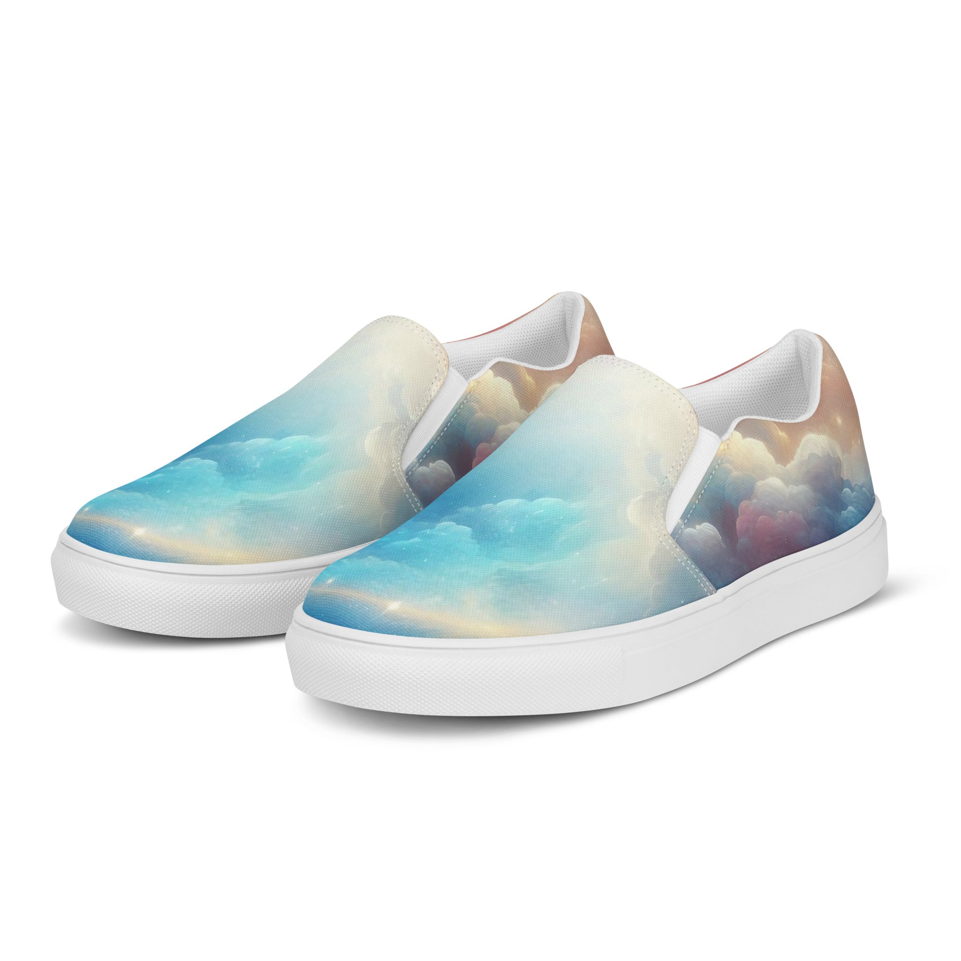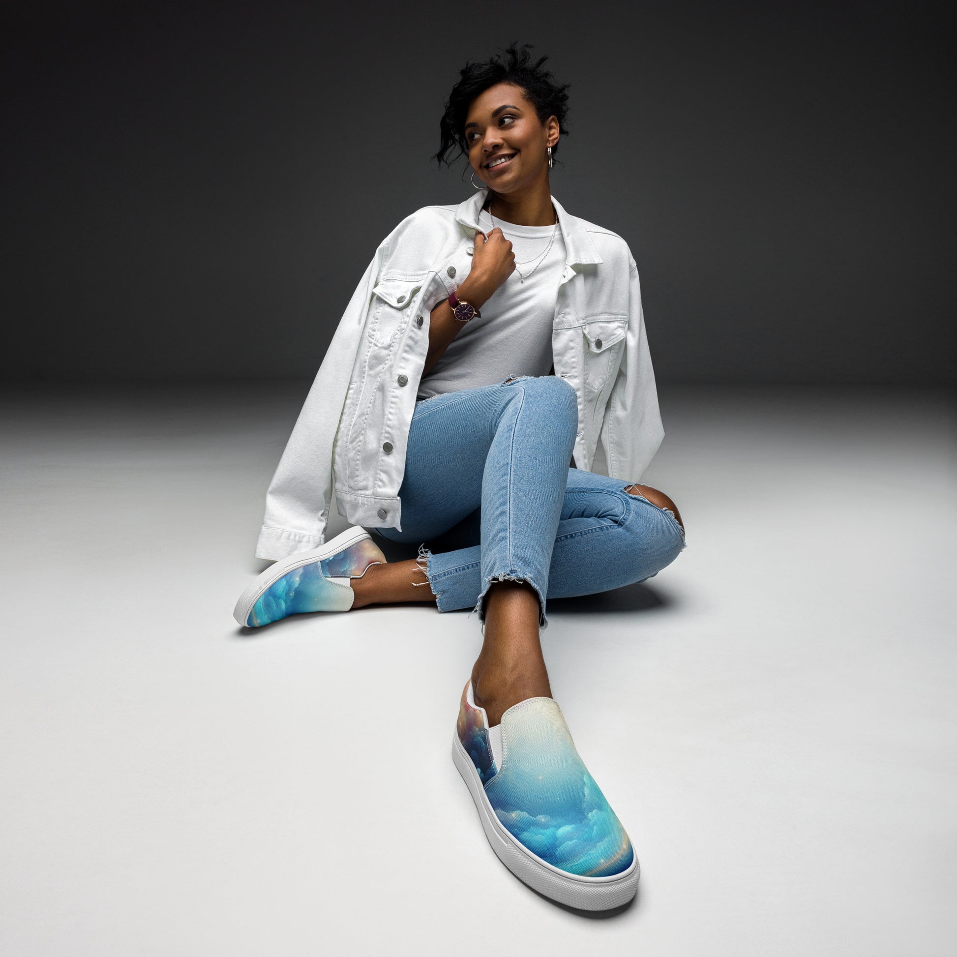 Ladies Blue Rainbow Clouds Slip-On Shoes