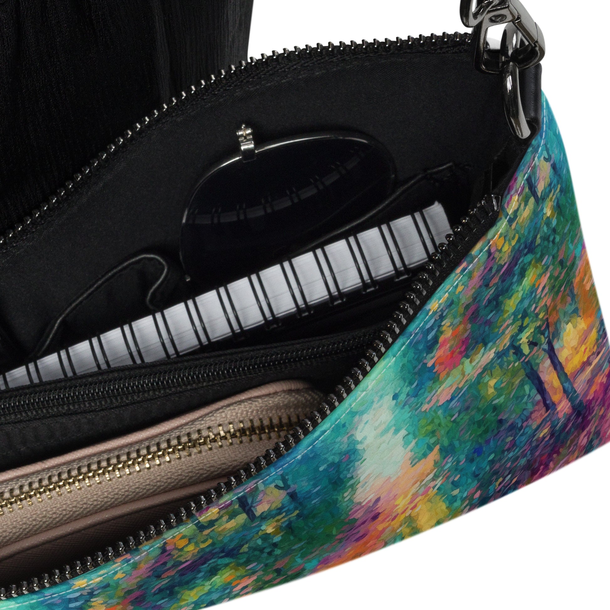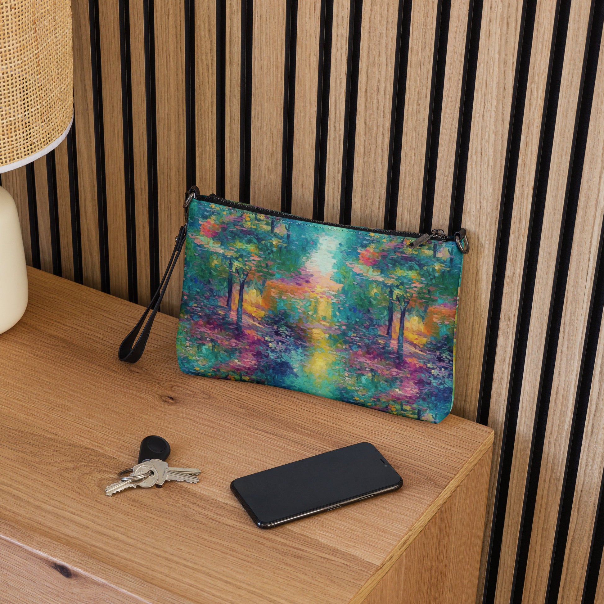 Looking for a versatile bag with a classic silhouette? The Monet Print Crossbody Bag is it. Made of premium faux leather, it features dark gray hardware and removable straps. This crossbody bag has a zip-top closure and plenty of inside pockets to keep your essentials safe and well-organized.