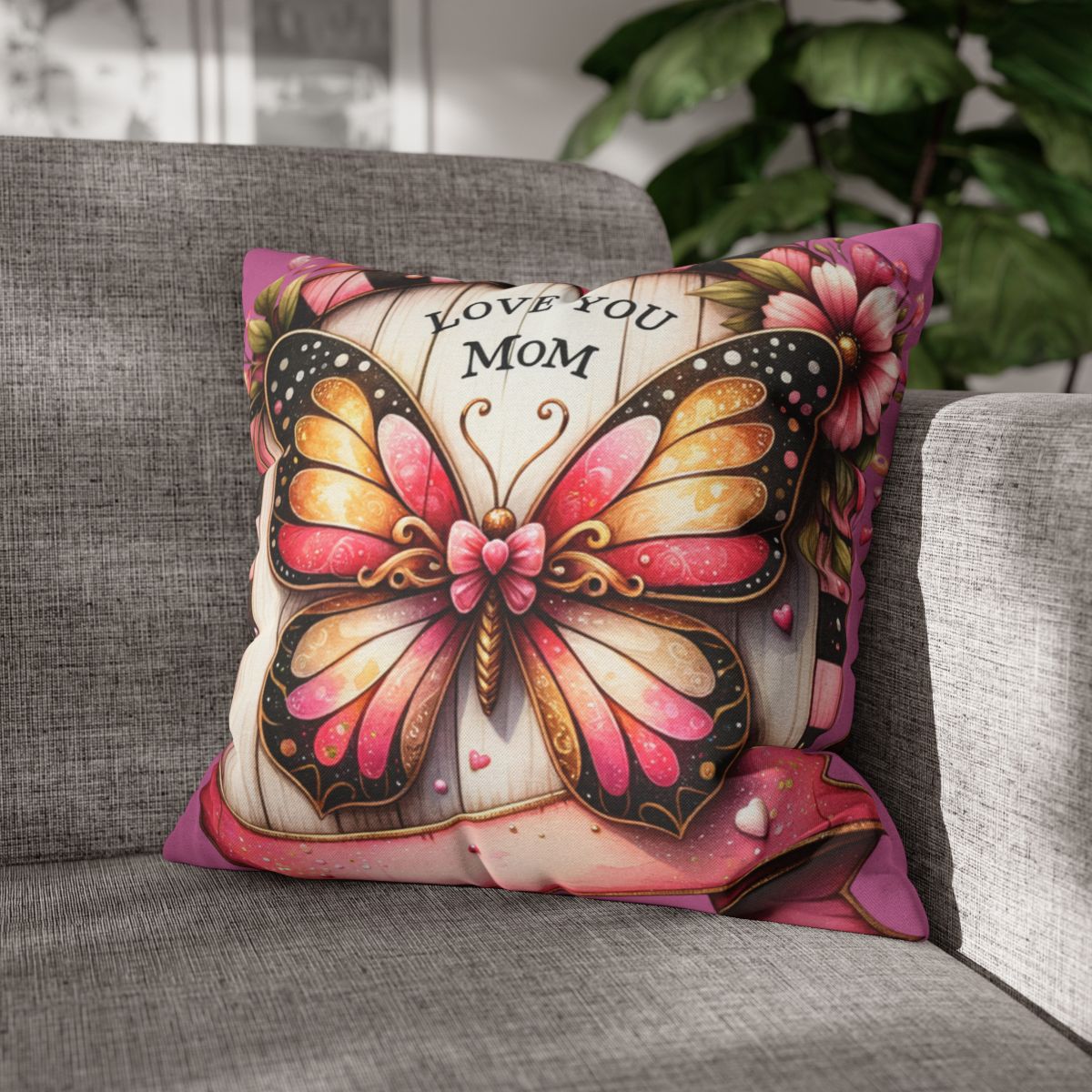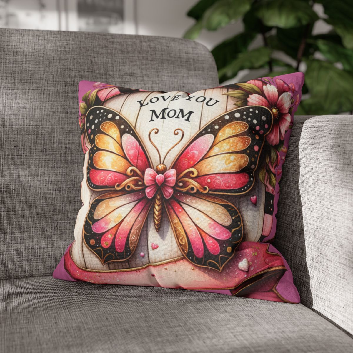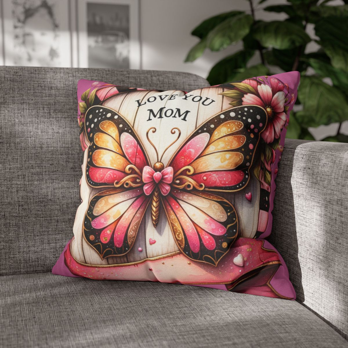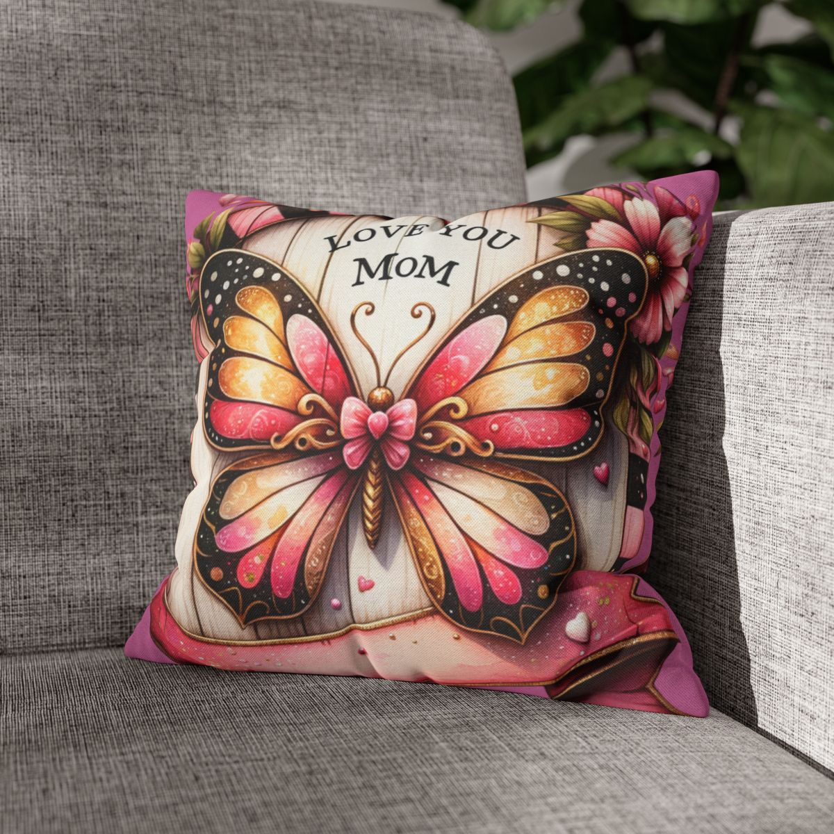 A cozy addition to your home decor, this pillow features a heartfelt message 'love you mom' on both sides. Perfect for showing appreciation to your mom on Mother's Day, her birthday, or just because. Ideal for those looking to add a touch of warmth and love to their living space.