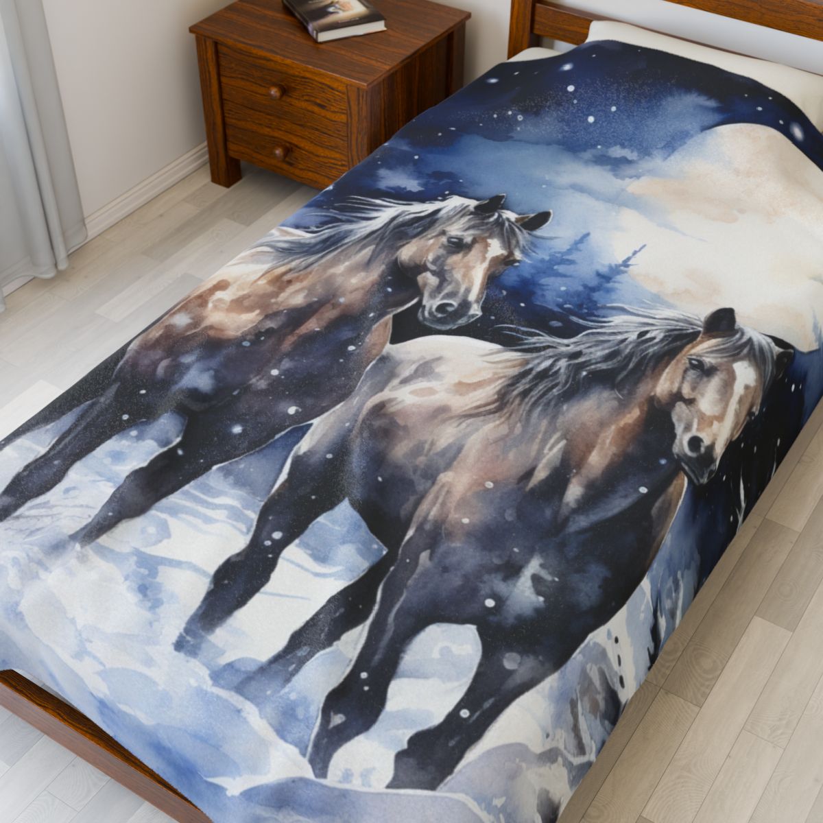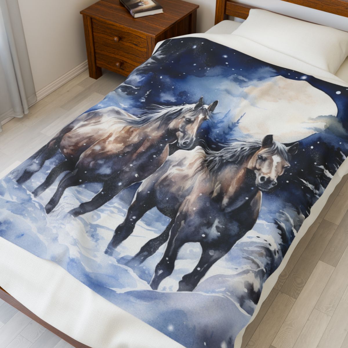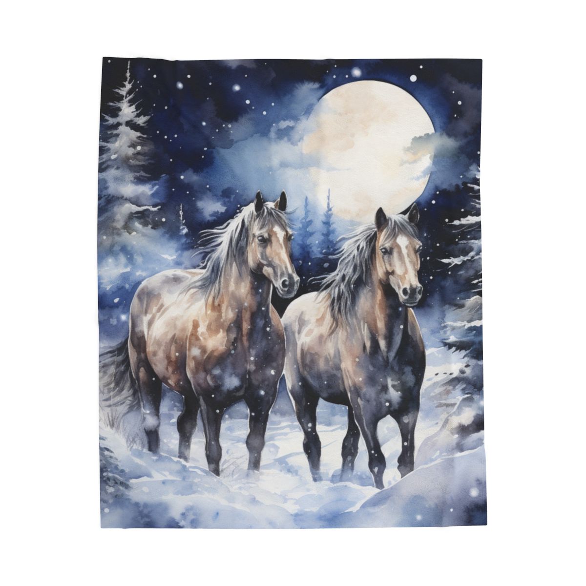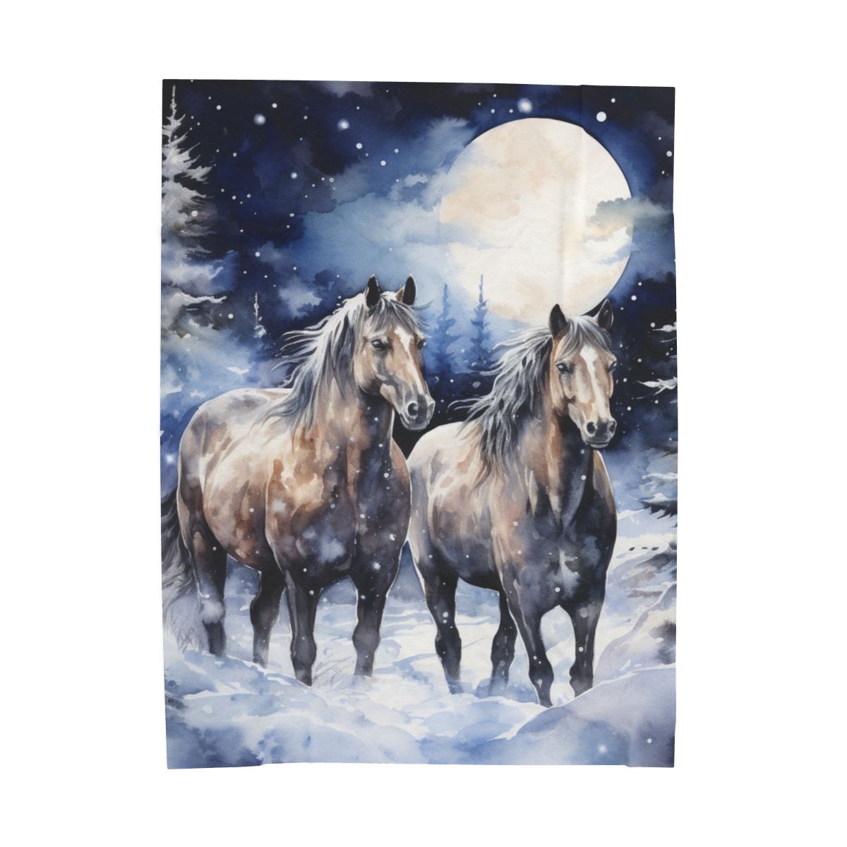 Majestic Winter Horses Velveteen Plush Blanket with Matching Tote Bag
