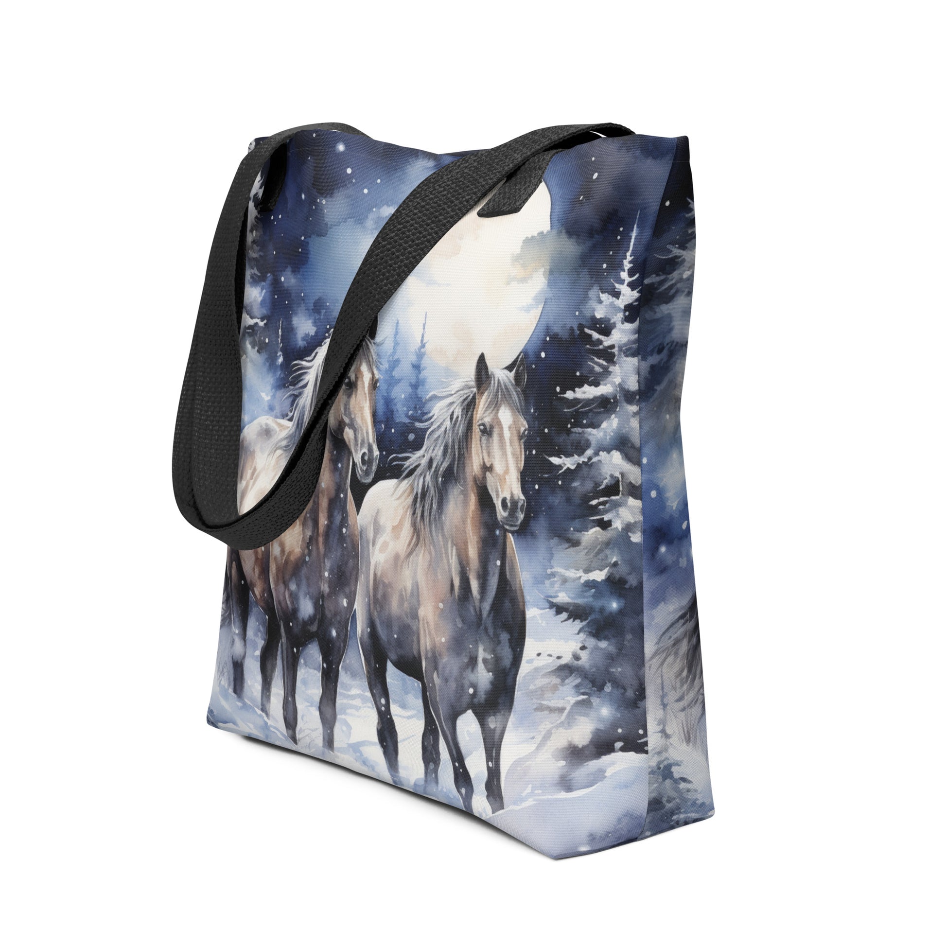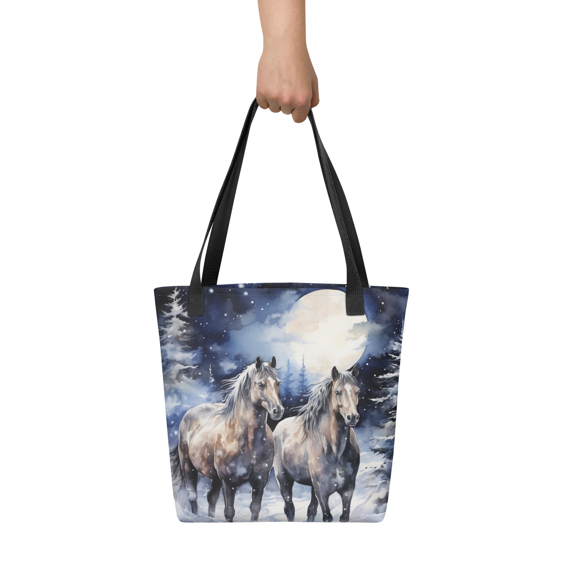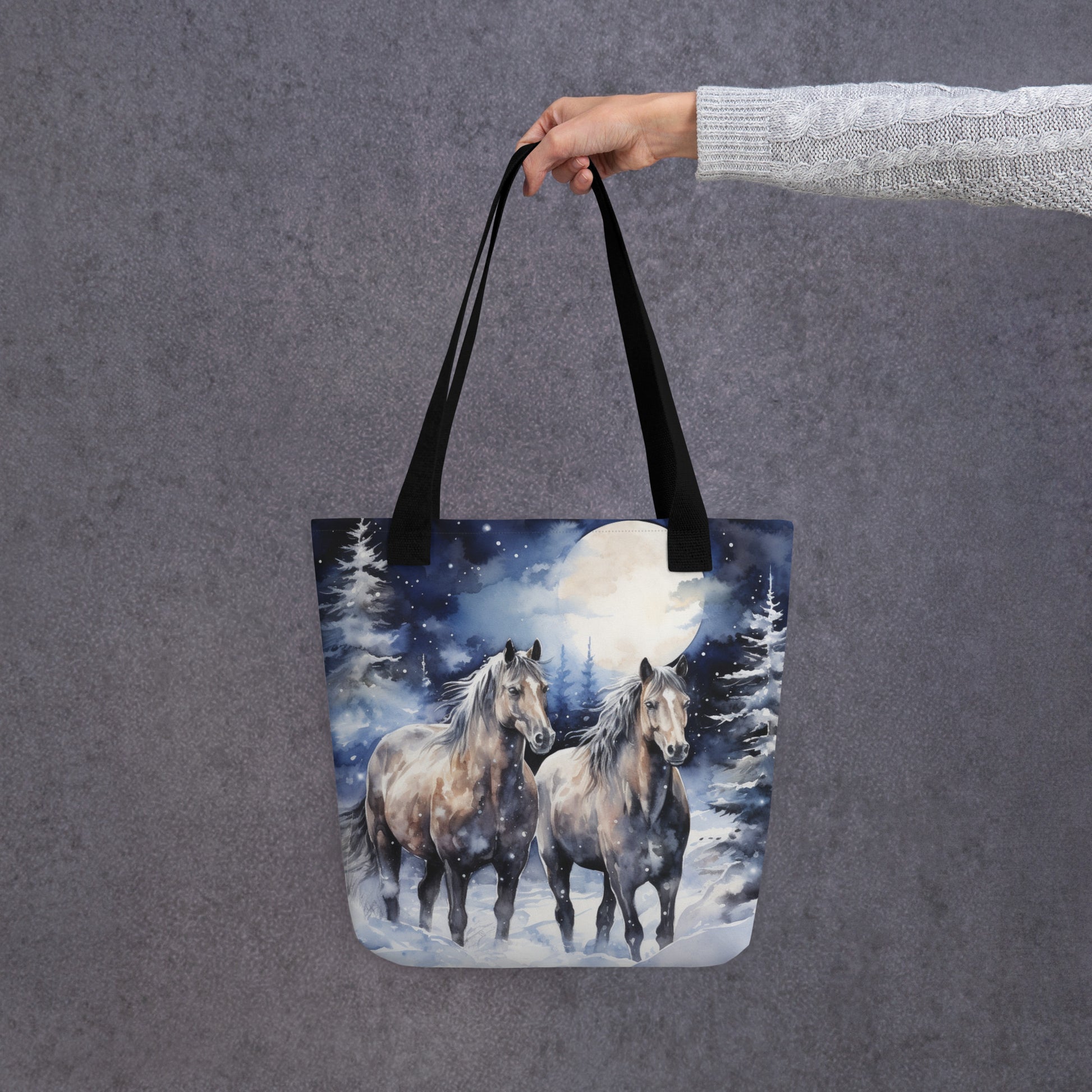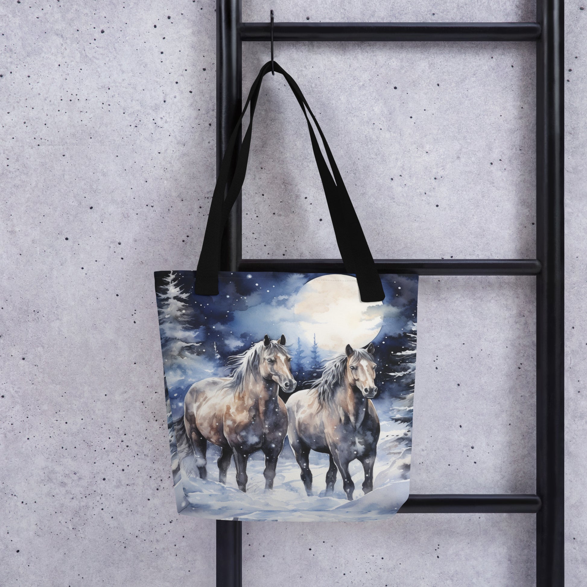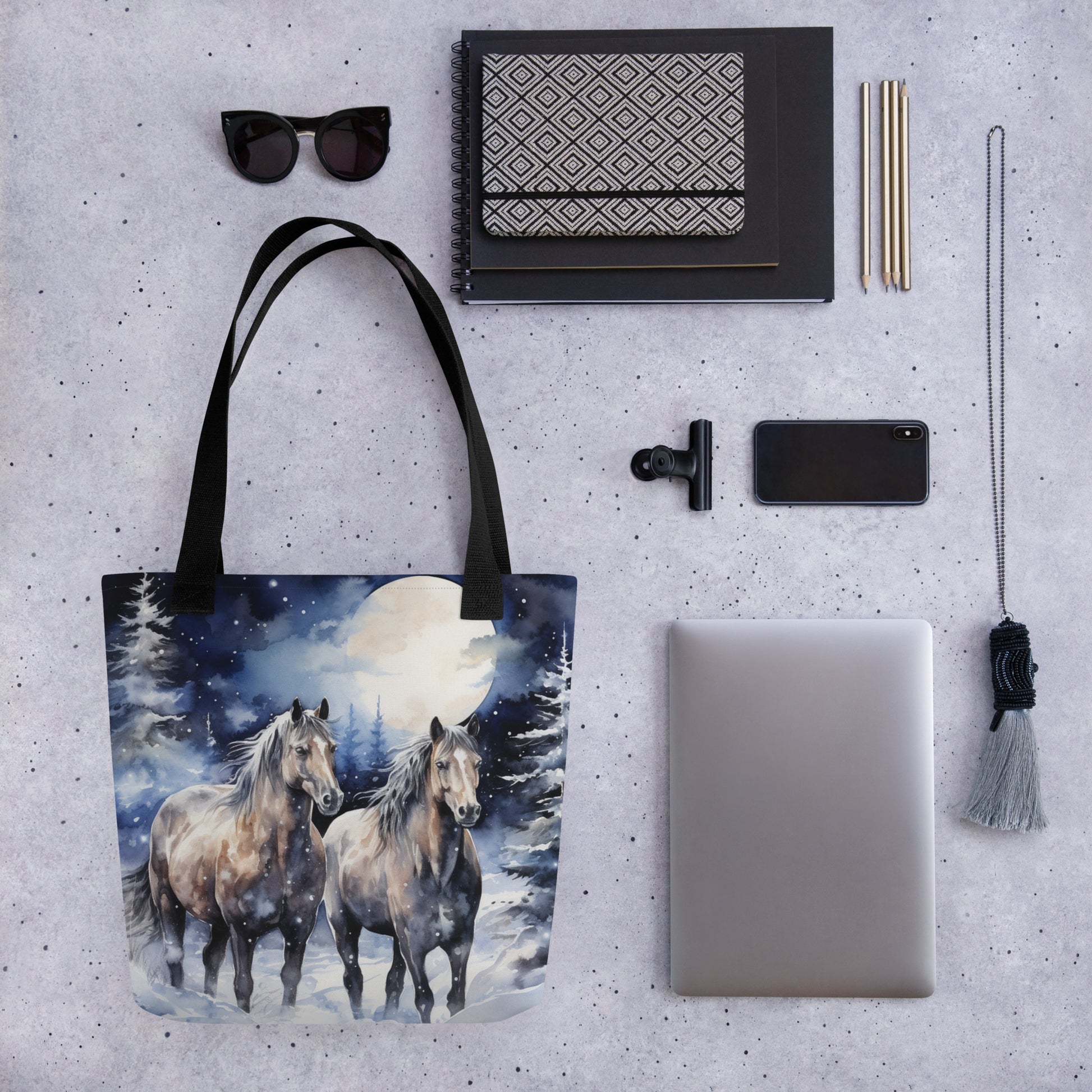 Majestic Winter Horses Velveteen Plush Blanket with Matching Tote Bag