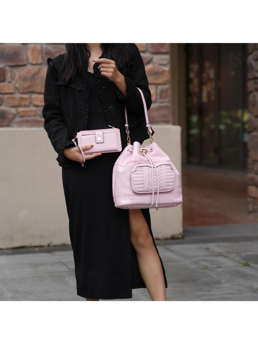 The bag’s standout feature is its drawstring closure, allowing you to secure your belongings effortlessly while adding a touch of modern flair.