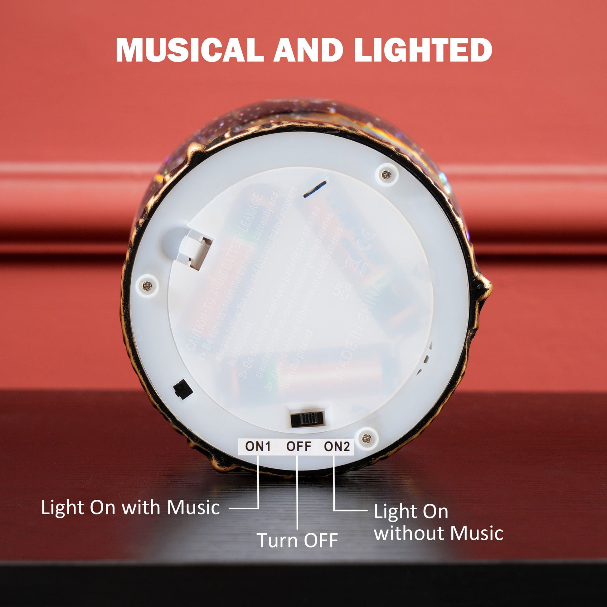 Musical Lighted Delight: Enjoy eight classic Christmas tunes in a loop with this Santa snow globe. It's equipped with warm white lights. You can light it up with or without music via the switch on the bottom.