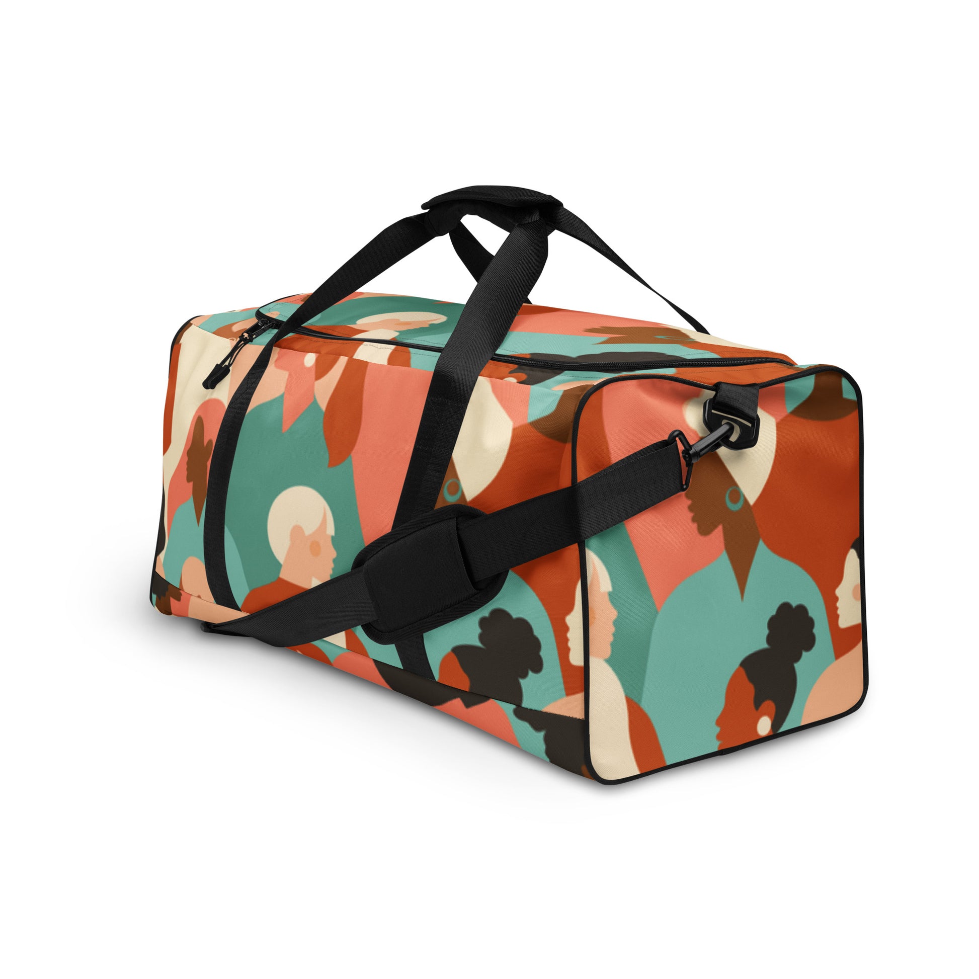This All-Over Print Duffle Bag is the perfect spacious bag no matter the occasion. It’s great for packing exercise gear when heading to the gym, or throwing in necessities and going on an adventure. Your stuff will stay organized and safe with the bag’s multiple inside pockets. The bag’s shoulder strap is adjustable or removable, while the dual padded handles with velcro fastening ensure easy carrying.
