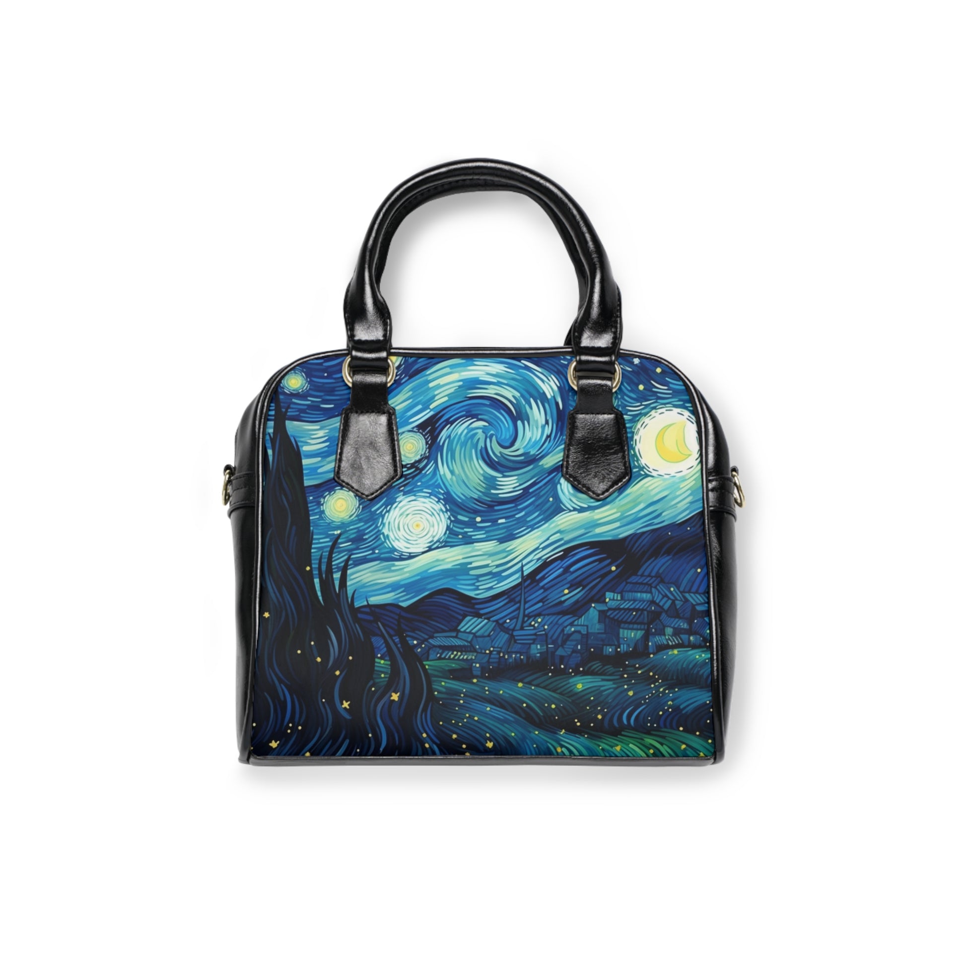 Stylish shoulder bag with a replica print of Van Gogh's Starry Night.
