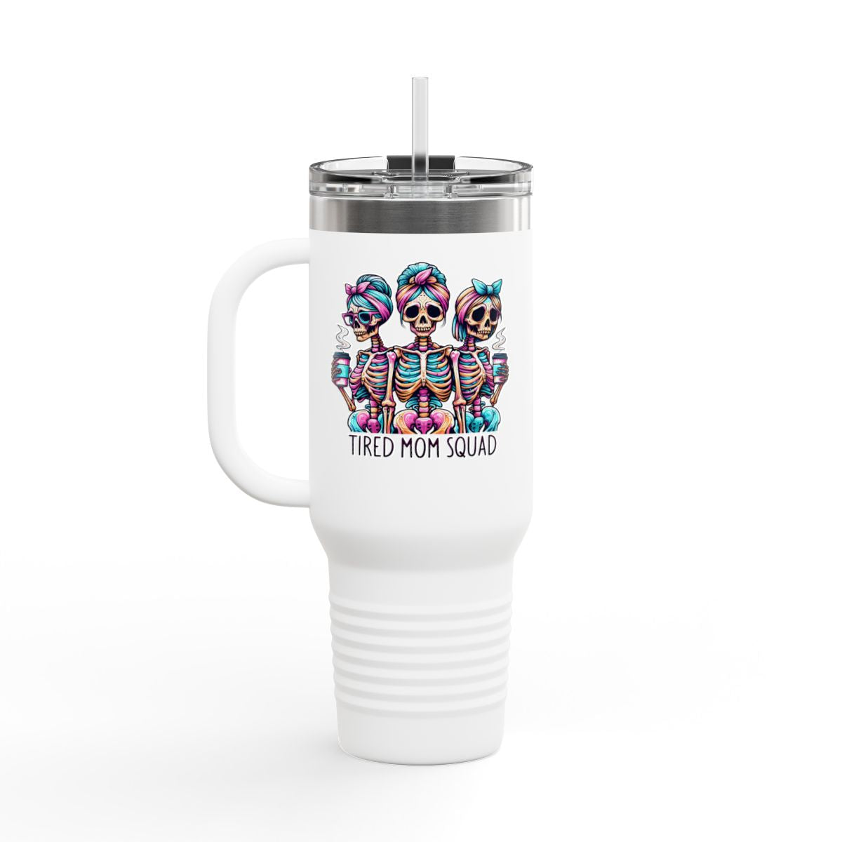 This tired mom squad travel mug is perfect for busy moms on the go. With its large 40oz capacity and double-wall insulation, it keeps drinks hot or cold for hours. The convenient handle and leak-proof lid make it ideal for long trips and outdoor activities. This travel mug is a must-have for moms juggling a hectic schedule.