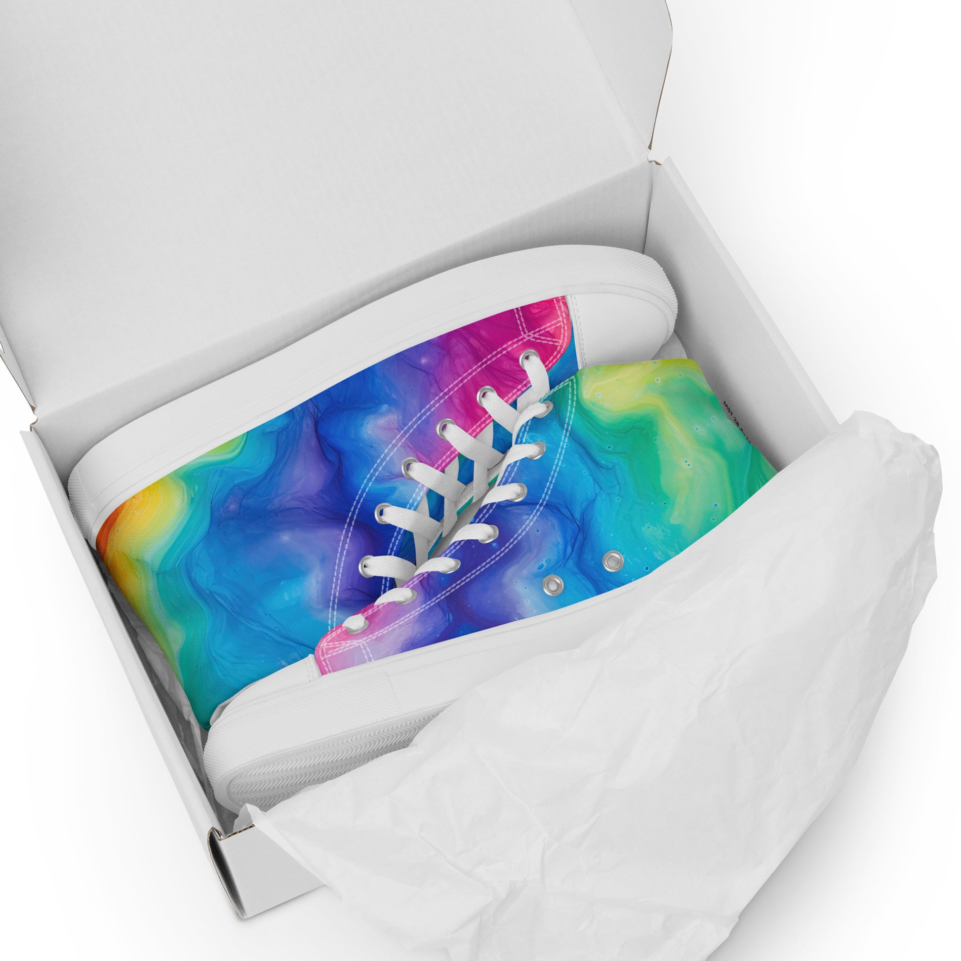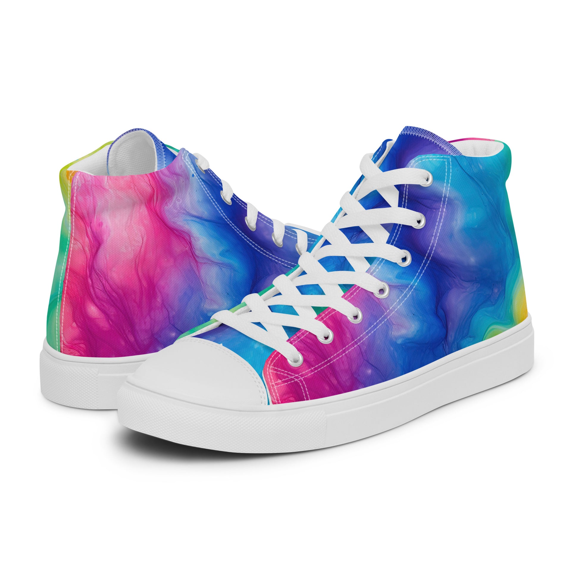 Shoes are what makes a look stand out—whether they match the outfit or not. These handmade Blue Tie Dye High Top Canvas Shoes have a retro feel to them, and can add the final touch to various clothing styles.